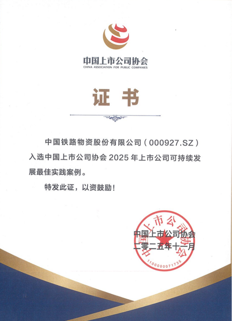 11月18日,在由中国上市公司协会主办的“2025年上市公司可持续发展大会”上,中国铁物申报的ESG案例《深化可持续实践 助力中国铁物转型发展》从众多案例中脱颖而出,荣获“2025年上市公司可持续发展最佳实践案例”奖,体现了中国铁物在推动业务绿色转型发展、完善治理体系、创造社会价值等方面的系统性成果。