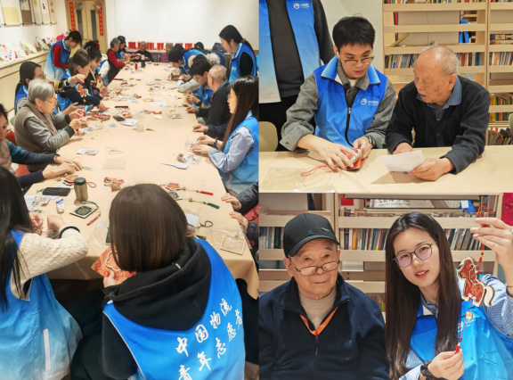 活动现场暖意弥漫、温情洋溢,在宋锦风铃手工制作环节,志愿者们化身为“非遗传承人”,耐心地为老人们讲解宋锦的历史渊源与文化内涵,细致地演示风铃的制作步骤。从宋锦面料的挑选、裁剪,到粘贴固定、串连装饰,每一个环节都进行手把手指导、一对一帮扶,兼顾细致性与趣味性。老人们情绪高涨、踊跃参与,手指灵动间,一个个兼具非遗韵味与人文温度的宋锦风铃陆续完成。老人们手捧自己的作品,眉眼间满是成就感与幸福感,笑容格外灿烂,现场氛围轻松和谐。