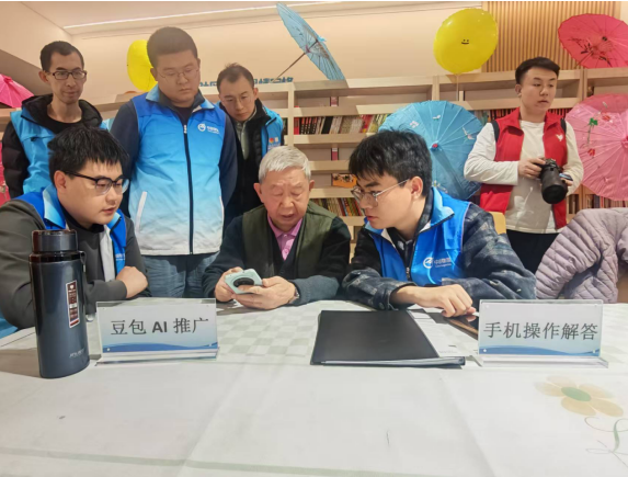 针对老年人在使用智能手机方面不够熟练、难以适应智能生活这一痛点,志愿者们开展了智能手机使用专项指导服务,并介绍了豆包等 AI 智能工具的使用方法。志愿者们以一对一、面对面的方式,耐心教导老人们操作微信聊天、视频通话、手机拍照、网上缴费等实用功能,使老人们直观体验到科技带来的便捷与乐趣,推动“智慧养老”融入老人生活。
